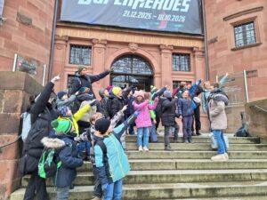 Endlich war es soweit: Am Donnerstag, 20.11.25, haben wir, die Klassen 2/3 und 3a, einen spannenden Ausflug ins Historische Museum unternommen. Nachdem wir uns am Morgen in unseren Klassenzimmern aufgewärmt und bei einem ersten Frühstück gestärkt hatten, liefen wir gemeinsam zum Bahnhof Süd in Schifferstadt. Voller Vorfreude stiegen wir in den Zug und fuhren nach Speyer.