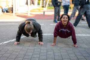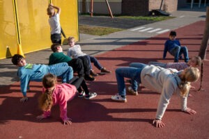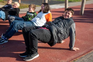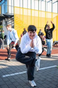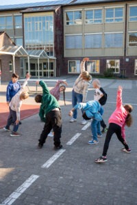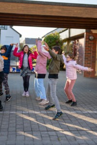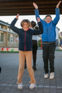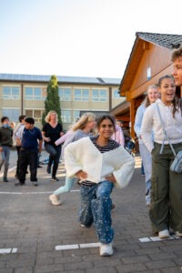 Die ganze Schulgemeinschaft traf sich am 2.10.2025 auf dem Schulhof. Bewegung war angesagt. Es gab viele Bewegungsstationen an denen sich Lehrkräfte, Schülerinnen und Schüler gemeinsam bewegten.
